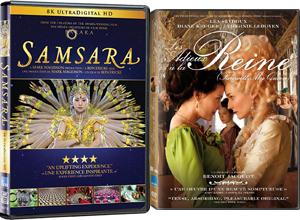 Présentation des DVD Samsara et Les adieux à la reine distribués par Les films Séville et sortie en magasin le 15 janvier 2013.