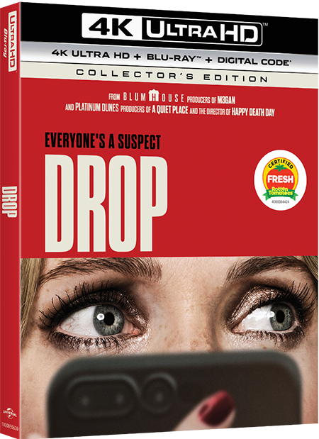 Universal Pictures Home Entertainment annonce pour le 10 juin 2025, le film DROP en 4K Ultra HD, Blu-ray et DVD.