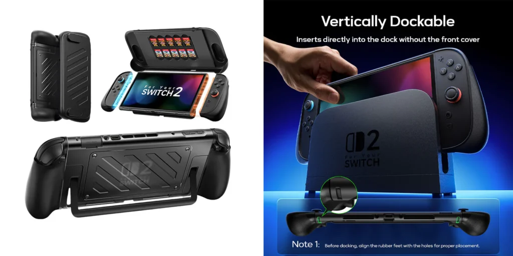 Jouer longtemps avec de petits Joy-Con peut parfois provoquer de la fatigue dans les mains. L’ajout d’une poignée ergonomique ou d’un étui avec poignées intégrées améliore considérablement le confort. En plus de protéger la console, ce genre d’accessoire rend les parties plus agréables, surtout lors des sessions étendues de jeux conviviaux comme Mario Party.