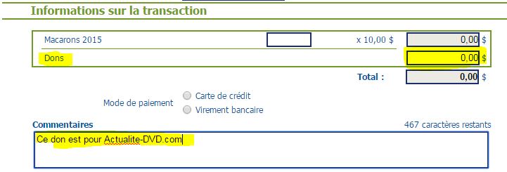 Pour valider votre participation aux concours, veuillez me faire parvenir une copie de la confirmation de votre don à l'adresse : info@actualite-dvd.com.