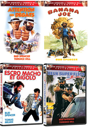 Présentation de 4 films en DVD avec Terence Hill et Bud Spencer, distribué par Axia Films.
